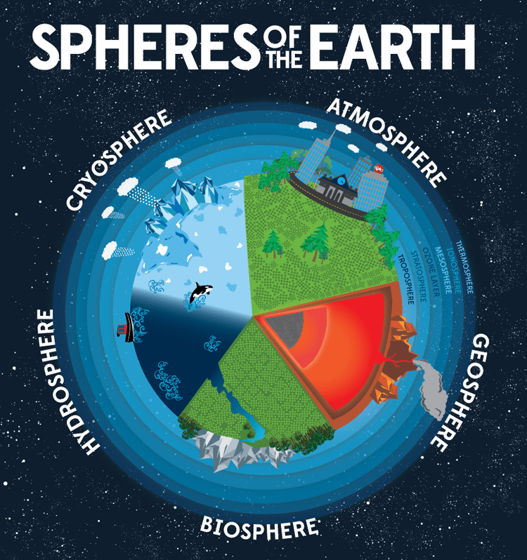 Spheres of the Earth, domains of Earth Sciences. Source: Kenneth W. Baldwin.