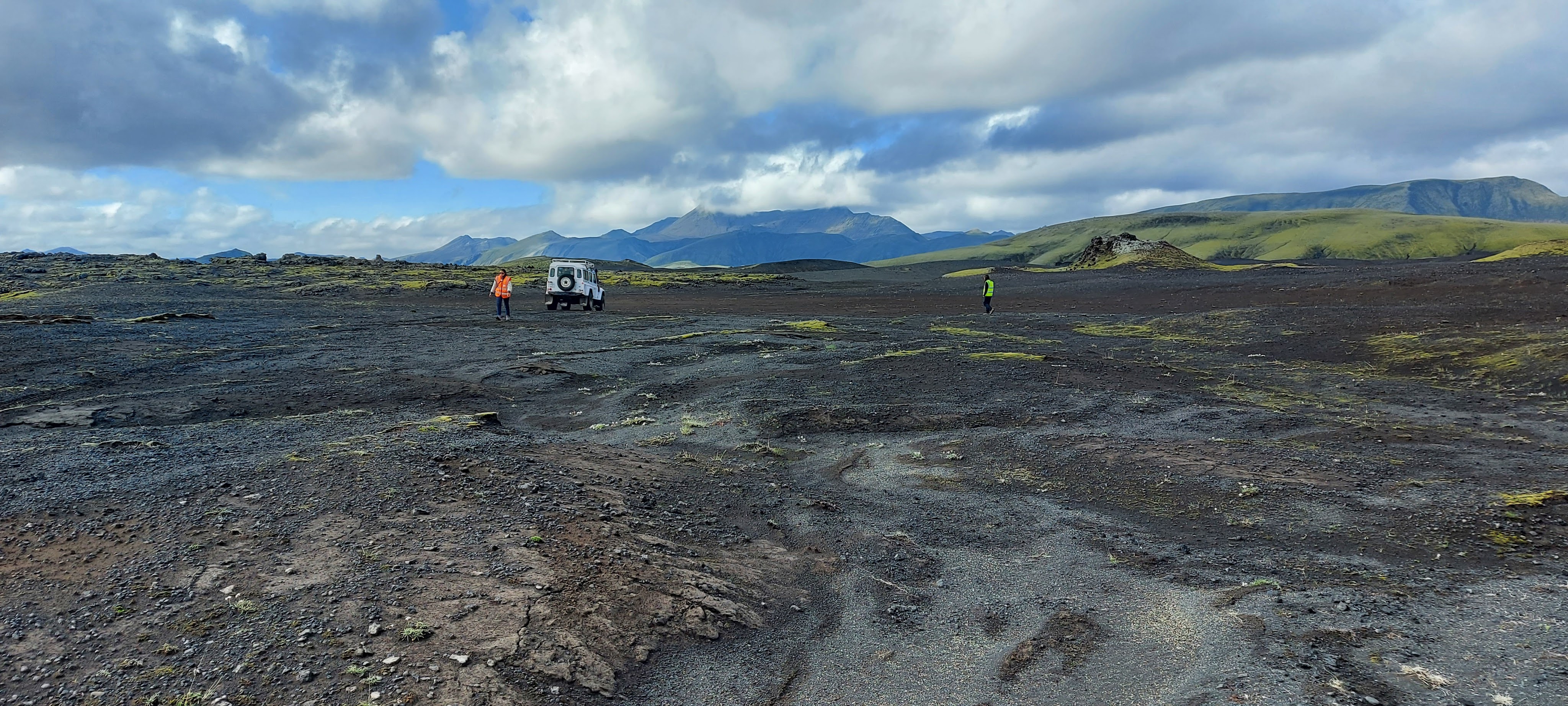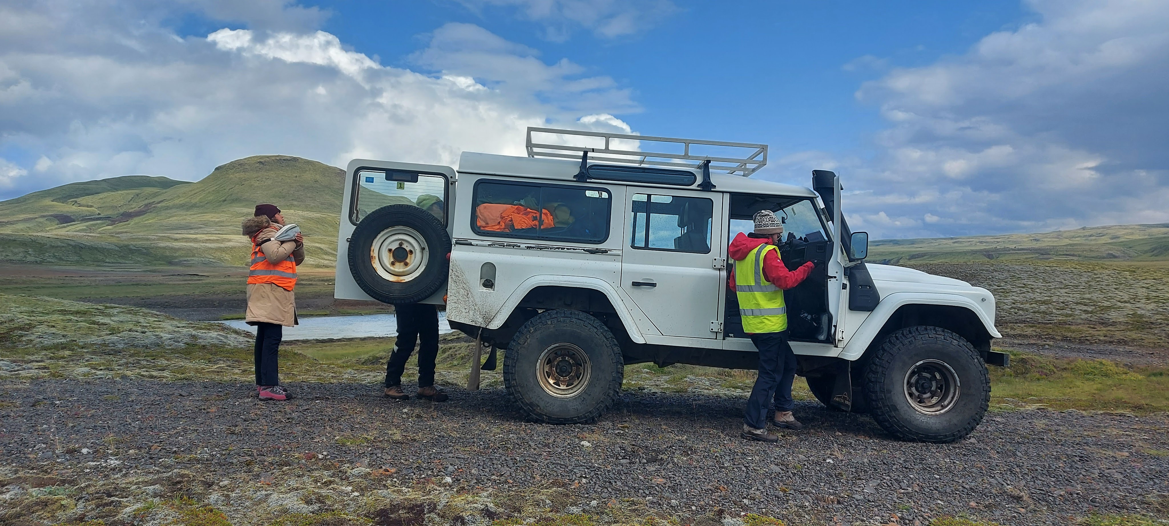 The following morning, we all convened at Askja, the University Earth Sciences building where, outside, were two beastly 4x4s: one Hilux and one old-school Land Rover Defender, which would be taking us out into the field. Will’s students would be in the Hilux driven by Iðunn, and Will, Jodie, and I would be in the Land Rover. Obviously, Will was driving as neither Jodie nor I had any off-roading experience (though that could change in the future). We spent a good two hours at Askja before heading off, as establishing food and meal plans and packing the cars with all the camping and field gear required some organisation, but soon both researchers and off-roaders were ready to go.